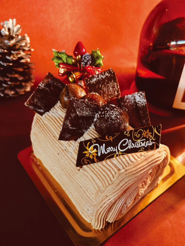 イタリア産のマロンペーストを使⽤しマロンムースとマロンクリームをたっぷり使ったモンブランのブッシュドノエルです。
