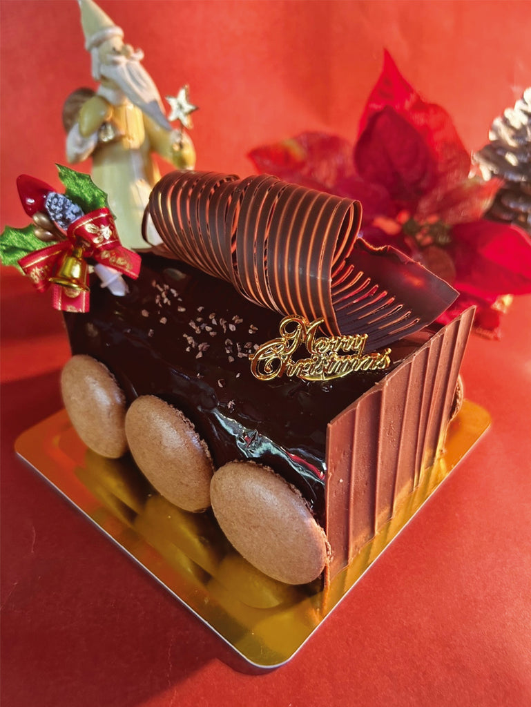 チョコレートのビスキュイと濃厚なチョコレートクリームを組み合わせ、グラサージュショコラでコーティング。